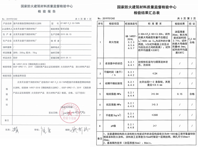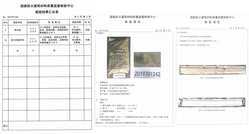 五、耐火時(shí)間和涂層厚度及涂料用量參考下表∶耐火時(shí)間3.0h,涂層厚度:7.0mm±0.2,涂料用量:7kg±0.2